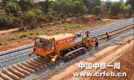 中鐵一局MXTJ-01標鋪架工程承接標段內T梁預制及架設1710孔、正線鋪軌289.14公里、站線鋪軌61.06公里的施工任務,馬瑞巴亞港至穆薩亞站區間線路全長55公里。自今年2月19日,跨幾內亞鐵路MXTJ-01標正式進入長軌鋪設階段以來,項目部克服交叉施工組織復雜、長軌運輸安全風險高、語言溝通障礙、高溫酷暑等諸多困難和挑戰,圍繞大干130天勞動競賽活動節點目標,深入開展“決勝鋪軌保開通”勞動競賽,中幾雙方攜手合作,科學規劃、高效組織,采用長鋼軌牽引車進行機械化長軌鋪設,以平均單班鋪設5.4公里的進度連續奮戰34天,順利完成馬瑞巴亞港至穆薩亞站區間長軌鋪設任務。