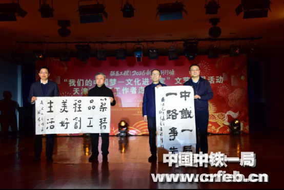凱歌辭舊歲,駿馬迎新春。2月2日,“強(qiáng)基工程”2026新春特別行動(dòng)天津市文聯(lián)“我們的中國夢—文化進(jìn)萬家”文藝惠民活動(dòng)走進(jìn)中鐵一局。天津市文聯(lián)黨組成員、二級巡視員劉志勇,中國書協(xié)副主席、天津市書協(xié)主席張建會(huì),河北區(qū)委副書記楊君毅,區(qū)人大常委會(huì)副主任、區(qū)總工會(huì)主席蘭香,中鐵一局黨委副書記、工會(huì)主席劉為帛,工會(huì)副主席張瑞生,黨委宣傳部負(fù)責(zé)人出席活動(dòng)。