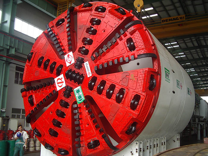 盾構隧道掘進機(簡稱“盾構機”),是一種隧道掘進的專用工程機械,主機由盾體,刀盤,臺車,螺旋機等構成。具有開挖切削土體、輸送土碴、拼裝隧道襯砌、測量導向糾偏等功能,一般應按照不同的地質進行“量體裁衣”式的設計制造,可靠性要求極高。盾構機目前已廣泛用于地鐵、鐵路、公路、市政、水電等隧道工程。