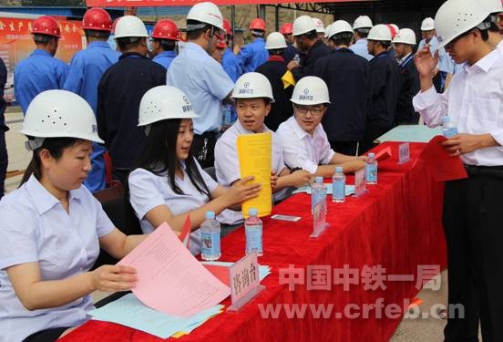 活動中,四公司靜靜鐵路項目部安質(zhì)部長首先帶領(lǐng)各級領(lǐng)導(dǎo)和與會人員進(jìn)行了安全宣誓,大家紛紛在印有“強(qiáng)化紅線意識,促進(jìn)安全發(fā)展”的橫幅上進(jìn)行了安全承諾簽名。隨后,項目部宣傳人員熱情地向工人代表們講解了安全生產(chǎn)法律法規(guī)以及相關(guān)知識,認(rèn)真解答了代表們對建設(shè)過程中安全施工的相關(guān)問題,并為大家發(fā)放了《施工安全生產(chǎn)常識》宣傳資料300余份。