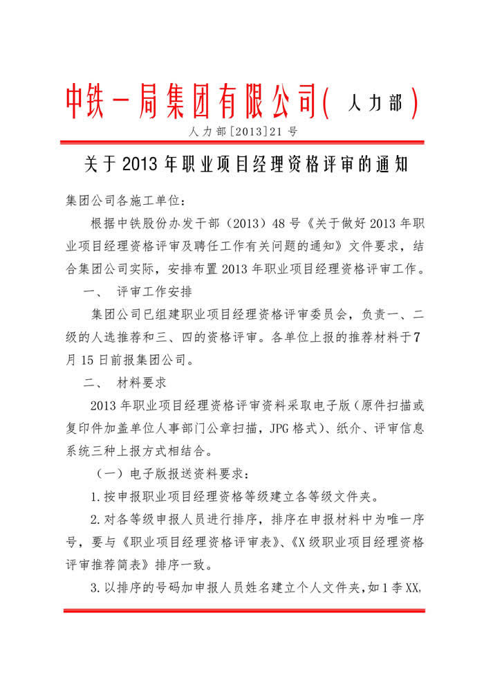 集團(tuán)公司關(guān)于2013年職業(yè)項(xiàng)目經(jīng)理資格評(píng)審的通知