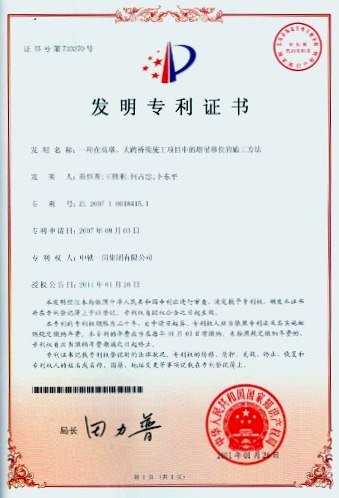 由我公司自主研發(fā)的“一種在高墩、大跨橋梁施工項(xiàng)目中的塔吊移位的施工方法”獲得國家知識(shí)產(chǎn)權(quán)局發(fā)明專利授權(quán)。