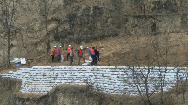 活動開始后,項目部的青年們個個朝氣蓬勃,在項目團支部書記劉彤涵的帶領下,經過近1個小時的山路攀爬徒步,來到了當地清澗縣石咀驛鎮糜山河村,同當地村民一起修筑嶄新的便捷安全的日常使用道路。大家紛紛揮動鐵鍬,拿起編織袋,將泥土收集、搬運、規整,沒有人在意臉上被灰塵鋪滿,沒有人在意腳上被潮濕泥土浸臟。大家全神貫注的將泥土碼齊、拍平,盡心盡力做好每一項修筑流程。