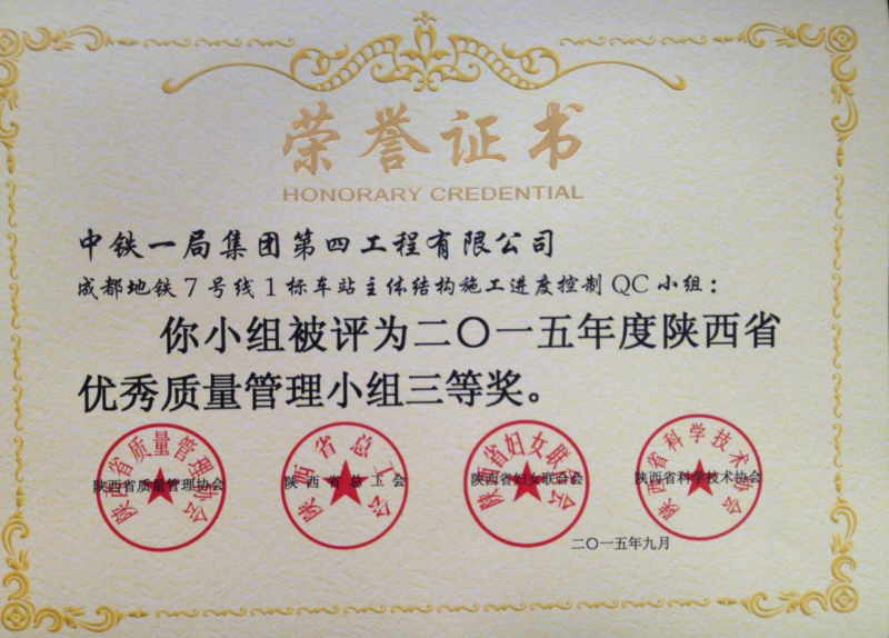 我單位隧道鋼拱架加工QC小組榮獲2015年陜西省優秀質量管理... -
