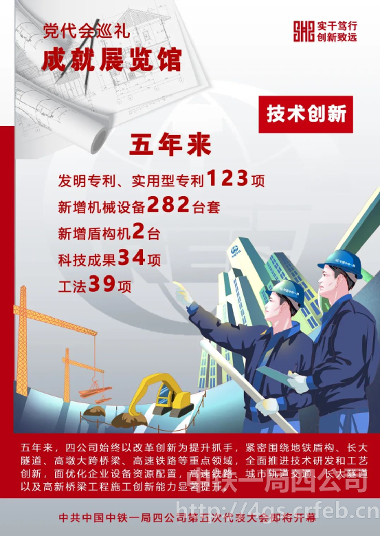 五年來,四公司以科技為第一生產(chǎn)力的理念,獲得了顯著技術(shù)突破和技術(shù)成效。新增機(jī)械設(shè)備282臺套,總功率4.41萬千瓦;新增盾構(gòu)機(jī)2臺。完成科技成果34項(xiàng),其中省部級28項(xiàng);共完成工法39項(xiàng),其中省部級工法22項(xiàng);榮獲發(fā)明專利、實(shí)用型專利123項(xiàng)。期間連續(xù)3年獲得股份公司20強(qiáng),先后榮獲“中央企業(yè)先進(jìn)集體”“中國中鐵先進(jìn)三級工程公司”“陜西省建筑業(yè)AAA級信用企業(yè)”等榮譽(yù)稱號。培育專家型技術(shù)人員隊伍,成立了專家創(chuàng)新工作室,推動企業(yè)重難點(diǎn)工程技術(shù)攻關(guān)。這些突破和榮譽(yù),是企業(yè)改革創(chuàng)新紅利的不斷釋放,也是高質(zhì)量發(fā)展取得積極成效,為國企改革三年行動的收官之年、決勝之年夯實(shí)勝利基礎(chǔ)。