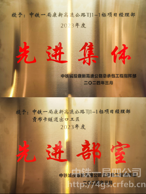 喜報丨康新高速TJ1-1標項目包攬中鐵城投康新高速公路總包指揮部2023年全部獎項