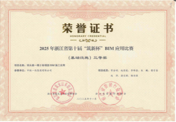 浙江寧波訊:浙江省第十屆“筑新杯”BIM應用比賽獲獎名單正式公布,中鐵一局壩頭路一期Ⅱ標項目部《甬聯智建·數筑通途——城市連拱隧道與高邊坡智慧建造技術全周期集成應用》BIM應用成果獲三等獎,進一步增強“一局隧道”品牌核心競爭力。