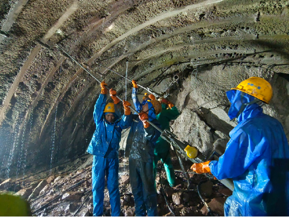 針對施工中單純依靠參數優化仍無法解決的大變形問題,團隊創新研發了一套匹配不同膨脹等級的施工控制技術體系,弱膨脹圍巖采用基于“三快”的邊挖邊襯技術,實現開挖、支護、成環平行作業,施工效率提升25%;中等膨脹圍巖應用精準測量預留變形量+非統一預拼鋼架技術,拱肩收斂位移降低33.9%;強膨脹及極強膨脹圍巖創新采用二次高壓注漿+讓壓鋼拱架工藝,錨桿抗拉拔力提升176.4%,有效破解了滲水環境下圍巖大變形及長期流變難題;針對富水高泥沙洞段,研發多級施工排水技術,水泵維修率降低40%,藥劑用量節約20%,從根本上解決了地下水浸泡導致的圍巖軟化問題。