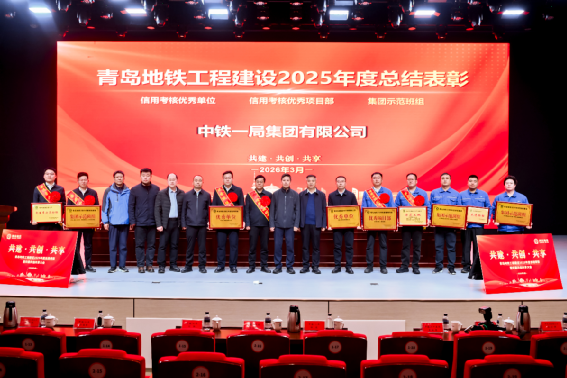 山東青島訊:3月16日,青島地鐵集團召開2025年度工程建設總結表彰暨共建共創共享大會。中鐵一局總會計師李獻林,五公司常務副總經理張超出席。會議表彰了相關參建方2025年度先進集體及個人。中鐵一局喜獲“土建施工信用考核優秀單位”“優秀賦能單位”榮譽稱號;中鐵一局五公司青島地鐵6號線二期混凝土班組獲“零違章示范班組”稱號;青島地鐵6號線二期01工區海西路站出入口開挖支護班組榮獲“年度集團示范班組”稱號。