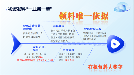 物資發料“一業務一單”單據組成元素