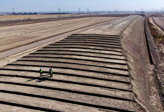 項(xiàng)目部堅(jiān)持把工藝工法工裝標(biāo)準(zhǔn)化作為重點(diǎn),針對(duì)橋梁墩臺(tái)、連續(xù)梁、箱梁制架施工,路基填筑、骨架護(hù)坡、路基排水等工序,運(yùn)用“五小四新”技術(shù),以工裝保工藝,以工藝保質(zhì)量,嚴(yán)格落實(shí)標(biāo)準(zhǔn)化施工,提升施工工效和質(zhì)量。橋梁工程采用灌無憂技術(shù)、成孔檢測(cè)技術(shù)、機(jī)械法切割樁頭整體吊裝技術(shù)、墩身兩布一膜養(yǎng)護(hù)、自動(dòng)張拉壓漿等四新技術(shù),以及“三架三箱三防護(hù)”、墊石錨栓孔定位、墩身護(hù)面鋼筋卡具等工裝,有效解決了戈壁地區(qū)樁基施工難題,保證現(xiàn)場(chǎng)施工安全質(zhì)量。路基施工嚴(yán)格執(zhí)行標(biāo)準(zhǔn)化施工作業(yè),路基填筑前先行開展工藝試驗(yàn),先后完成路基本體填筑、基床底層填筑、過渡段填筑工藝試驗(yàn),獲取第一手?jǐn)?shù)據(jù),為路基大面積填筑提供科學(xué)依據(jù)。在傳統(tǒng)“三階段、四區(qū)段、八流程”工藝基礎(chǔ)上,項(xiàng)目部引入平地機(jī)3D控制系統(tǒng)、路基連續(xù)壓實(shí)系統(tǒng)、路基沉降自動(dòng)化監(jiān)測(cè)系統(tǒng)、防侵限智能刷坡系統(tǒng)等一系列數(shù)智化系統(tǒng),以及邊坡拱架開槽機(jī)、水溝一次成型機(jī)等新設(shè)備、讓路基防護(hù)工程既美觀又耐久。