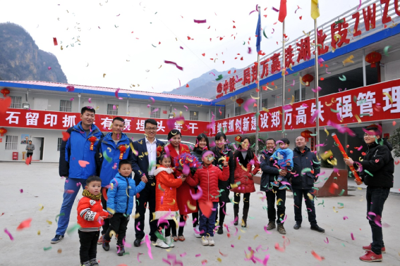 到了中鐵一局項目部住地,看到大門前紅色充氣拱門中央貼著“牟敏波、孫方敏喜結(jié)良緣”幾個黃字。住地場地里卻很清靜,一點沒有神農(nóng)架年輕人結(jié)婚時火炮嗩吶齊奏、人頭攢動的熱鬧場面。一問項目部辦公室里的人才知道,新郎牟敏波還在工地上沒有回來。他們又帶我到另一個辦公室,指著一個在電腦前正在操作鍵盤的女孩告訴我“這就是新娘孫方敏”。孫方敏望著我,微笑地點點頭,抱歉地說:“不好意思,我手頭上的事還沒有做完,做完了再來陪你們!”