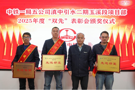 云南玉溪訊:1月17日,中鐵一局滇中引水二期玉溪段項目部召開2025年度“雙先”表彰會暨職工民主管理代表大會。會議表彰了年度涌現(xiàn)的先進(jìn)集體與個人,全面回顧總結(jié)過去一年的奮斗歷程與工作成果,系統(tǒng)部署新一年度重點任務(wù),團(tuán)結(jié)動員全體職工為高質(zhì)量推進(jìn)工程建設(shè)、打造水利工程標(biāo)桿而凝心聚力、再啟新程。項目領(lǐng)導(dǎo)班子、職工代表及各勞務(wù)工代表50余人參加了本次大會。
