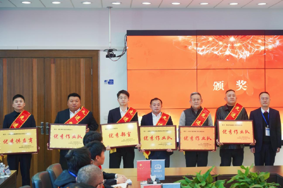 在“雙先”表彰會(huì)上,項(xiàng)目負(fù)責(zé)人宣讀項(xiàng)目部2025年度“雙先”表彰文件,對(duì)在年度生產(chǎn)攻堅(jiān)突破、團(tuán)隊(duì)配合協(xié)作、內(nèi)控管理提升、后勤服務(wù)保障等各項(xiàng)工作中表現(xiàn)突出的6個(gè)“先進(jìn)集體”和15名“先進(jìn)個(gè)人”予以表彰并頒發(fā)獎(jiǎng)牌及榮譽(yù)證書(shū)。表彰環(huán)節(jié)后,先進(jìn)個(gè)人與先進(jìn)集體代表先后登臺(tái)交流發(fā)言。會(huì)議強(qiáng)調(diào),先進(jìn)代表是項(xiàng)目建設(shè)的中堅(jiān)力量與精神旗幟,全體參建員工要以先進(jìn)為榜樣,主動(dòng)汲取奮進(jìn)力量,傳承務(wù)實(shí)擔(dān)當(dāng)作風(fēng),在項(xiàng)目收官?zèng)_刺的關(guān)鍵階段凝心聚力、勇毅攻堅(jiān),共同推動(dòng)項(xiàng)目建設(shè)再攀新高。