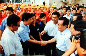 政協主席李瑞環視察西康鐵路秦嶺隧道工程時與中鐵一局領導親切握手