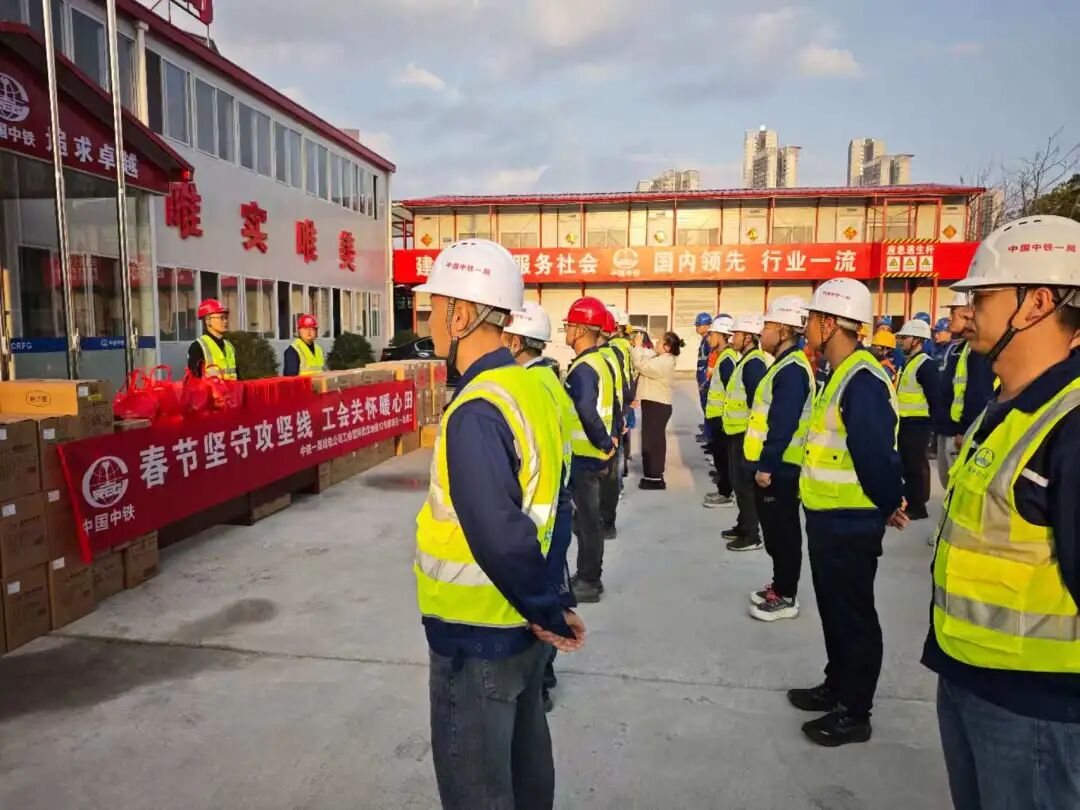 就在建設(shè)者們酣戰(zhàn)之際,公司與項目兩級工會同步開展新春慰問活動,將節(jié)日的溫暖送到了一線。生活用品、干果……一份份實用的物資,一聲聲真摯的祝福,極大地鼓舞了大家的攻堅熱情。帶著這份關(guān)懷與囑托,項目跑出了建設(shè)“加速度”。