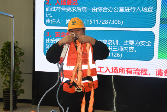 會上,項目負責人匯報了年后復工復產情況,并對參會工人進行了詳細的安全教育,培訓過程中安全員在現場示范安全帽、安全帶、安全衣的穿戴方法及使用方法。
