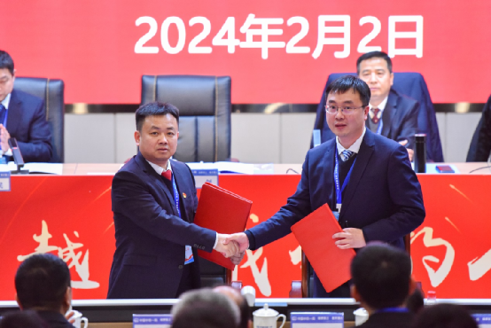 在第三次全體會議上,宣布了“兩委會”當選人名單、“兩委會”第一次全體會議主持人名單;總監(jiān)票人報告了票決、測評結果。張劍代表企業(yè)方、樊嘉棟代表職工方,共同簽訂了公司《2024年集體合同》。