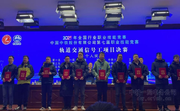 (哈爾濱訊)12月22日,2025年全國行業職業技能競賽暨中國中鐵第七屆職業技能競賽軌道交通信號工項目決賽在哈爾濱落下帷幕。來自中國中鐵所屬12個工程局的60名信號技能精英同臺競技、交流切磋、共同提升。經過激烈角逐,中鐵一局選派的參賽選手電務公司張翔斬獲個人第一名及青年組個人第一名、汪強奪得個人第三名及青年組個人第二名,創下公司在該項賽事中的歷史最好成績,彰顯了“一局電務”品牌的扎實底蘊。