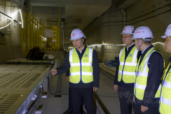 在華莊站施工現場,危兵星聽取了項目負責人關于工程進展、重難點問題及后續施工安排的詳細匯報,詳細詢問站臺門安裝進度和工藝標準;在變電所,看到工程人員不僅為設備柜覆蓋了成品保護罩,還用纏繞膜進一步提升防塵保護措施后,危兵星對項目“在細節上下功夫”的做法表示肯定。在華莊站—凈慧西道站區間,他重點檢查了環網敷設、接觸軌安裝、疏散平臺步板安裝等專業化施工質量,強調要嚴格落實工完料清要求,嚴格遵守安全文明施工要求。