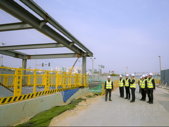 在無錫地鐵4號線二期瑞景道站施工現場,危兵星認真聽取供電項目負責人關于工程亮點、施工難點及當前進展的情況匯報。在地鐵出入口,看到雨棚鋼構框架已施工完成,他駐足詳細詢問后續光伏發電雨棚的安裝方案、并網手續辦理等具體事宜。他指出,光伏雨棚是首個應用于無錫地鐵出入口的新工藝,施工過程務必嚴把工程質量關,全力打造標桿樣板工程。進入站內變電所后,危兵星俯身仔細查看絕緣地坪成品質量,詳細了解絕緣地坪施工流程、絕緣性能和使用年限等情況,對該成熟可行的新工藝予以肯定,并要求在后續地鐵工程中積極推廣應用。