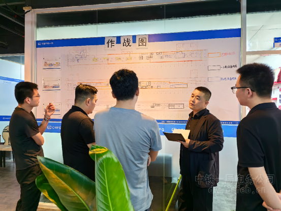 為了確保能實時了解工程進度,駱曉帶領工程技術人員,系統梳理施工點位,細化工程節點,明確完成時限,精心繪制了工程“作戰圖”(進度形象圖),用不同顏色條加以動態標注。每周碰頭總結會結束后,各專業負責人及施工隊帶班人員均會齊聚 “作戰圖”前,明確施工重點,商討細化方案細節,確保責任到人、實時跟進。