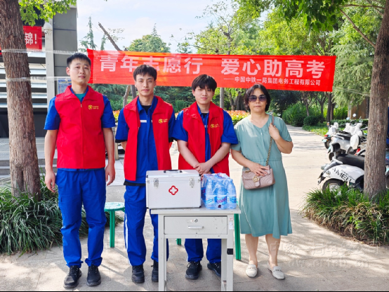 在鄭州,一分公司鄭州地鐵12號線機電項目的黨員、團員青年青年組成志愿者隊,建立愛心助考點,精心準備了礦泉水、能量飲料、急救藥品等物品,并專門配備一臺應急值班車輛,解決考生中可能出現的突發問題,全力為考生護航,奉獻拳拳愛心。期間,青年志愿者樊承霖還接受了鄭州電視臺的采訪。同時,一分公司鄭州地鐵維保項目的青年志愿者還在臨近考點的地鐵站旁設置簡易助考點,并配備礦泉水、文具以及急救箱,助力考生圓夢。