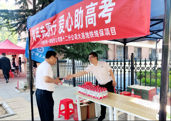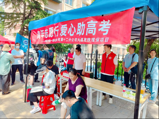 在大連,十二分公司大連地鐵維保項目組織青年志愿者在大連市第四十七中學考點附近,開展了“青年志愿行 愛心助高考”活動。志愿者在現場設立了“愛心驛站”,為廣大考生、家長、交警及現場服務人員提供了礦泉水、紙巾等物品,還提供了舒適的陪考休息區,以實際行動為莘莘學子高考護航。