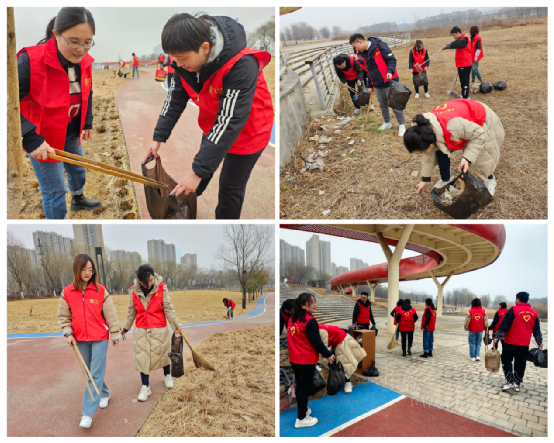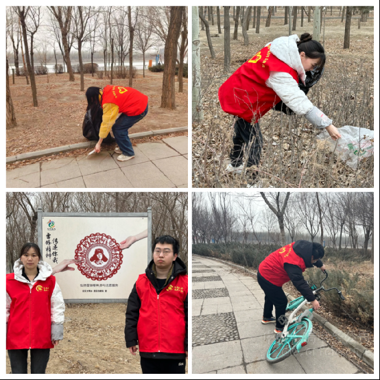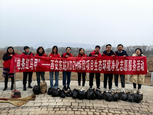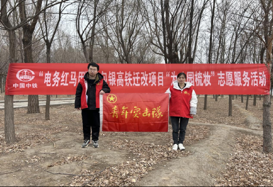 在新疆,八分公司紅淖三鐵路S14標項目組織開展了“學雷鋒”公園清掃志愿服務活動,志愿者們拿起抹布、掃帚,為公園的公示牌拭去新年的喧囂,帶來春天的清爽;為林蔭小道掃去冬日的寒冷,帶來電務青年的溫暖。