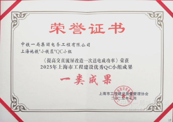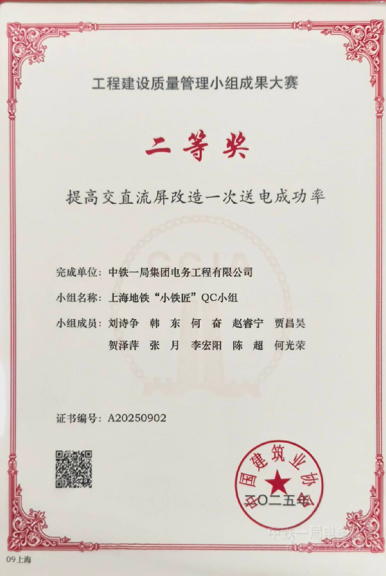 近日,中鐵一局電務(wù)公司上海地鐵大修改造項(xiàng)目部“小鐵匠”QC小組憑借課題《提高交直流屏改造一次送電成功率》,在國家級“工程建設(shè)質(zhì)量管理小組成果大賽”中榮獲二等獎,并先后斬獲上海市工程建設(shè)優(yōu)秀QC小組一類成果等多項(xiàng)榮譽(yù)。