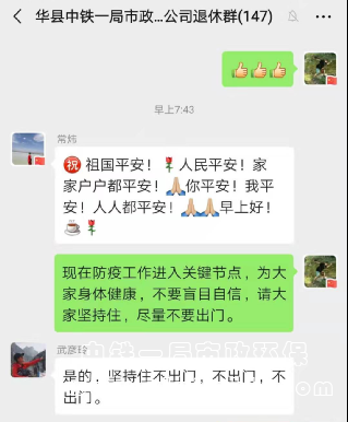 同時為了能夠做好及時有效的宣傳,他也會將自己在網上看到的一些防護措施進行轉載給退休職工們。用他的話來說,退休的職工都是企業的寶貴財富,我作為退管辦的黨員干部就要確保老人們晚年的健康生活。
