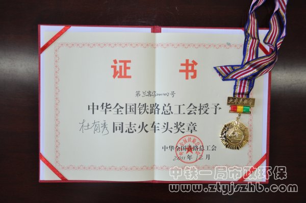 受過何種獎勵稱號:2007 年榮獲中鐵一局集團公司先進個人、2010年榮獲中鐵一局集團市政環保公司十大標兵、2011年榮獲中華全國鐵路總工會火車頭獎章、2013年榮獲中鐵一局集團市政環保公司十大標兵及蘭州鐵路局中川鐵路公司優秀項目經理、2014年12月榮獲打造全國一流高鐵示范站優秀項目經理