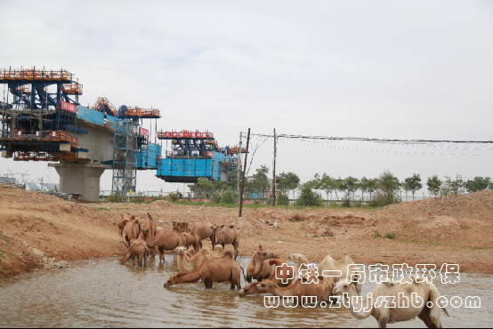 為了最大程度的不影響當?shù)伛橊劦纳盍曅裕椖坎繉︸橊劽刻斓纳盍曅赃M行摸排,還想方設法保留了在連續(xù)梁附近原有的駱駝飲水區(qū),根據(jù)駱駝的移動軌跡在施工現(xiàn)場為“它們”設置了“綠色通道”。