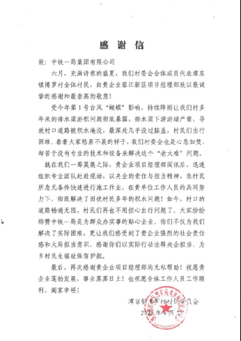 近日,中鐵一局接連收到兩份特殊的“禮物”:蓉江新區(qū)項(xiàng)目部收到潭東鎮(zhèn)博羅村委會(huì)送來(lái)的錦旗與感謝信,大上崇項(xiàng)目獲社溪鎮(zhèn)麻田村委會(huì)贈(zèng)予的錦旗。這兩面錦旗與感謝信,既是村民對(duì)項(xiàng)目團(tuán)隊(duì)工作的肯定,更是對(duì)公司踐行社會(huì)責(zé)任、心系群眾需求的高度認(rèn)可。