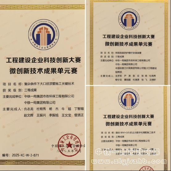 在微創(chuàng)新賽道上,《灌漿套筒裝配式橋梁四柱墩高精度拼裝技術研究與工程應用》成果取得一等成果,《融合BIM+GIS的土方數(shù)字化調配施工技術》《復雜條件下大口徑頂管施工關鍵技術》《鐵路路基防護柵欄安裝裝置研發(fā)與應用》成果取得三等成果。