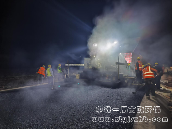本次施工路段全長約1.4公里,采取全幅攤鋪工藝,有效減少縱向接縫,確保路面整體平整度。施工期間,項目團隊克服了復雜天氣與連續作業的雙重挑戰。清晨時分,現場常被濃霧籠罩,能見度較低,但攤鋪作業仍按計劃持續推進,施工人員在霧中密切配合,保障工序銜接有序。為全力推進工程進度,團隊還科學組織了夜間施工,在確保照明與安全的前提下,保持了施工節奏的連貫穩定。現場負責人帶班管控,對瀝青溫度、碾壓遍數與邊角處理等關鍵環節進行嚴格把關,保障了路面成型均勻密實、質量達標,為后續順利通車奠定了堅實基礎。