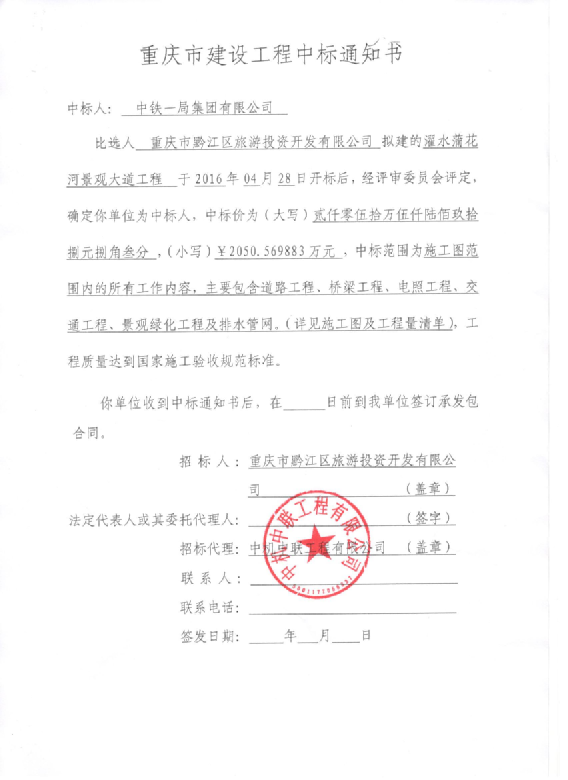 4月28日,公司中標(biāo)重慶市黔江區(qū)濯水古鎮(zhèn)景觀大道工程。