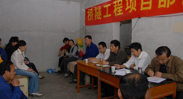 橋隧工程項目部2007年民管會5月11日在寶成線大巴口大橋加固工地召開,會議由項目部黨支部書記、工會主席楊文選主持,公司工會主席、副總經理溫浩地、團委副書記張宏偉、項目部黨政工團領導和20多名職工代表參加了會議。