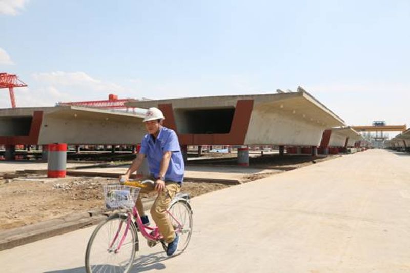 梁場面積大,現場檢查一圈就得近一個小時。手機計步器顯示,大家每天的步數都在3萬步以上。步行已經無法滿足施工的節奏,為了提高工作效率,項目部還專門為技術人員配備了電動車和自行車。