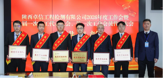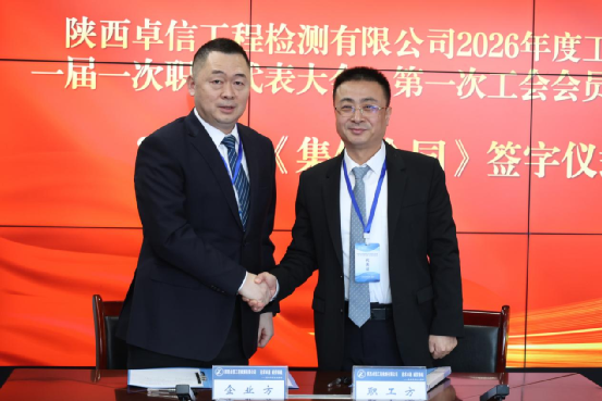工會主席、副總經(jīng)理張國勇作了題為《凝心聚力促發(fā)展 情系職工譜新篇 團結帶領廣大職工為實現(xiàn)公司高質量發(fā)展而努力奮斗》的工會工作報告。頒發(fā)“最具貢獻獎”證書頒發(fā)“最具貢獻班組”獎牌頒發(fā)“優(yōu)秀檢測師”證書會上,張國勇宣讀了2025年度先進集體和先進個人表彰決定,與會領導分別為先進代表頒獎。馬龍代表企業(yè)方,張國勇代表職工方共同簽訂了2026年《集體合同》;陳吉強與三大中心負責人現(xiàn)場簽訂了2026年《安全質量環(huán)保責任書》。